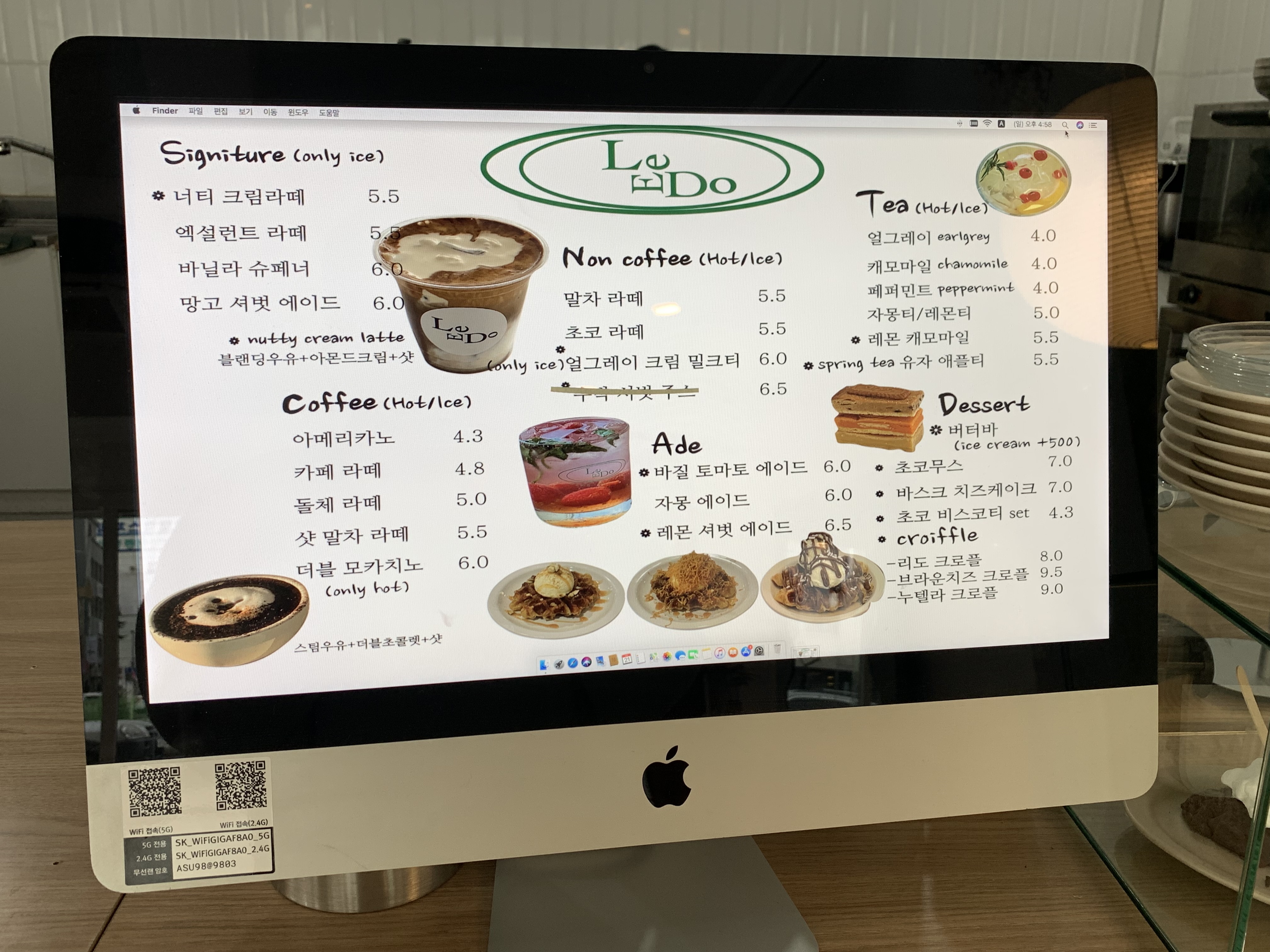 리도카페는 감성카페에 걸맞게 맥북 화면에 메뉴들과 옆에 디저트 모양들이 있어서
